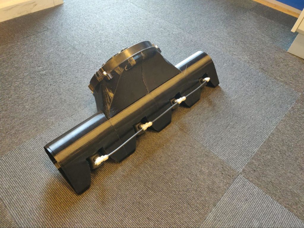 Design af nyt sprøjtemodul. Forstøveren er implementeret i bommen i specielle udfræsninger så den er beskyttet mod turbulens fra dronens rotorblade.