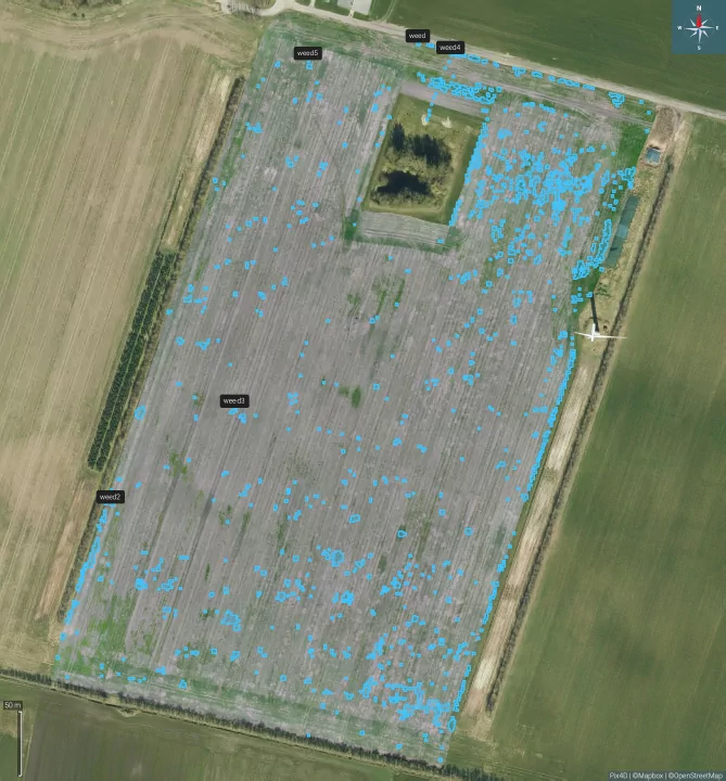 Droneflyvning og test af algoritme til automatisk detektering af spildkartofler, en-kimbladet og to-kimbladet ukrudt